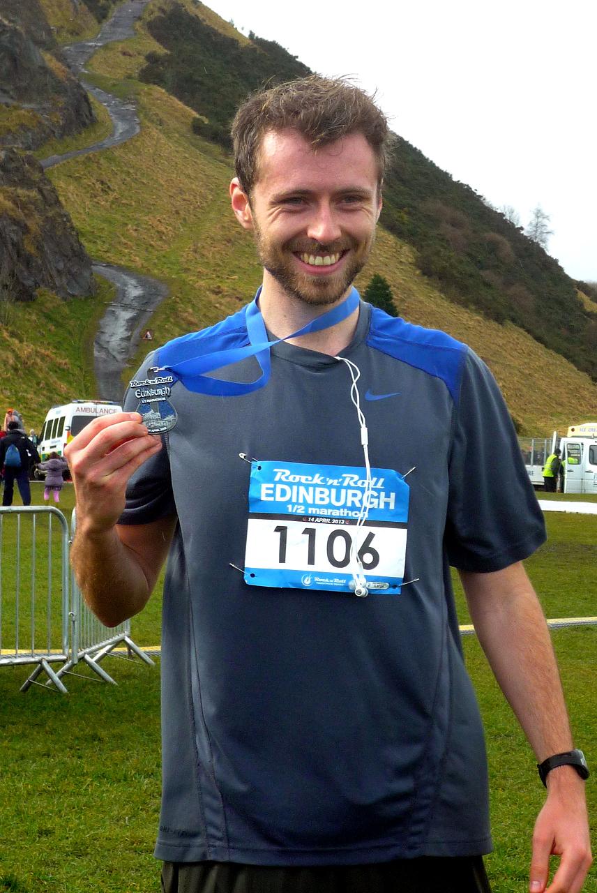 That’s exactly what I did on the final stretch down the Royal Mile where the adrenaline of nearing the end gets your legs pumping. A big smile on my face, I was cheered on to the finish line in glorious sunshine by my parents and Pippa. Kidding: it was still chucking it down.