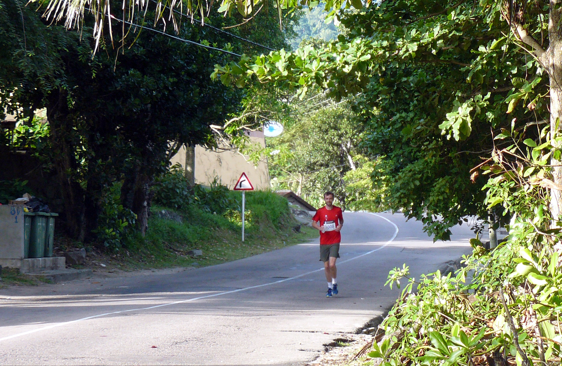 The start line is at Beau Vallon beach, a beautiful 1km stretch of white sand on the North West coast. I actually started off quite well and kept pace with the two male runners (who, by the way, were bloody fast considering the 90% humidity and 30C heat!). The first little loop took us along the windy Bel Ombre Road towards…Bel Ombre village. It was around this point that, for the first of 8 times in the next hour, my stomach decided that running was most definitely not a good idea and that a bush needed to be found most urgently! For anyone who has never run with severe trapped wind, indigestion, constipation or pregnancy, it’s painful. Very painful. And this particular bout was, on the spectrum of pain, probably up there with giving birth or gnawing one’s arm off. On the plus side, at least I avoided what happened to this runner…