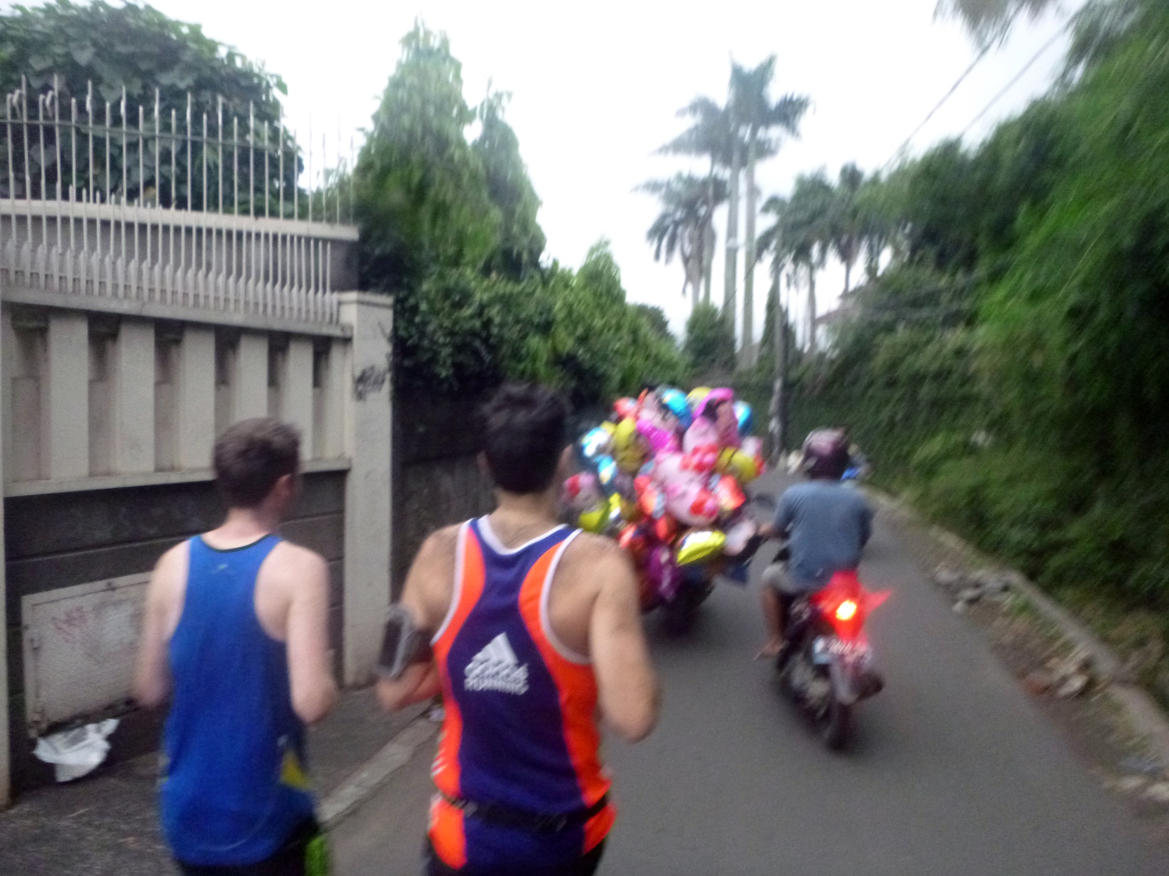 There were no organised runs in Jakarta while there (to be fair, I was only there for 2 days) and, well, there’s actually pretty much nothing to see in Jakarta other than traffic jams and smog so I was delighted to meet up with a local running group for a tour of residential Jakarta.