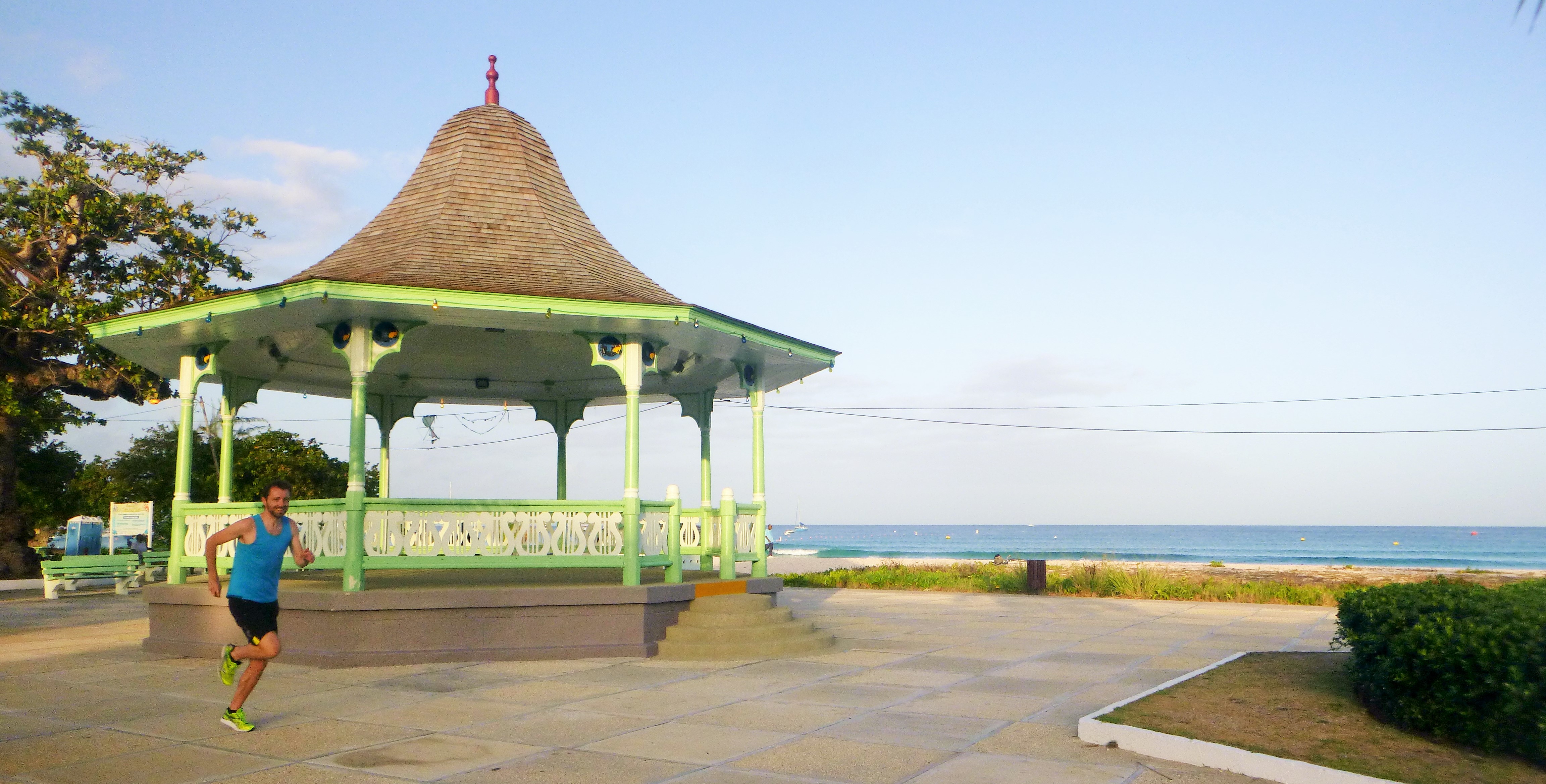 Anyway, with a pretty pissed off smile on her face, we headed down to the bandstand in Carlisle Bay, which is where the official half marathon normally kicks off from.