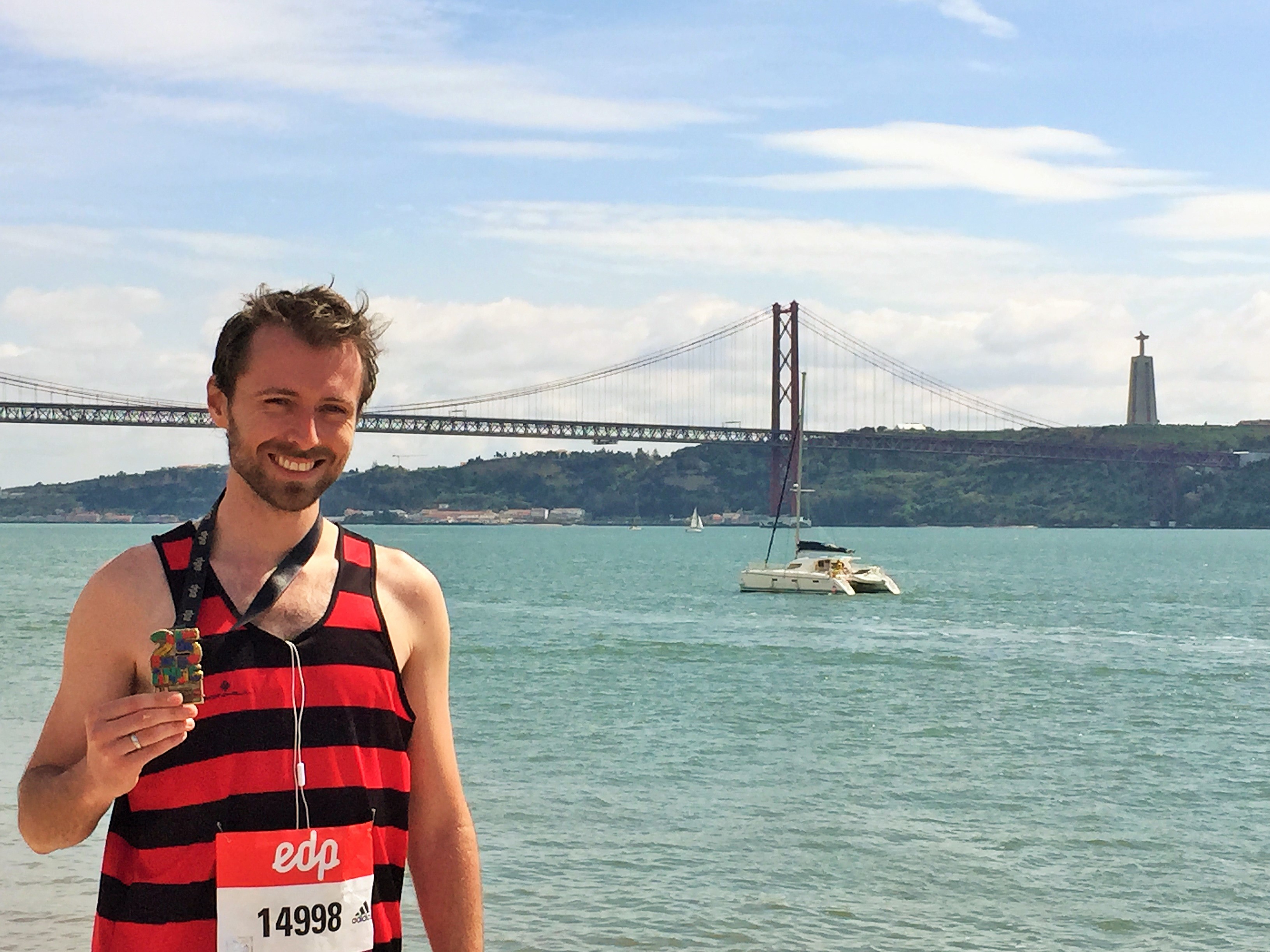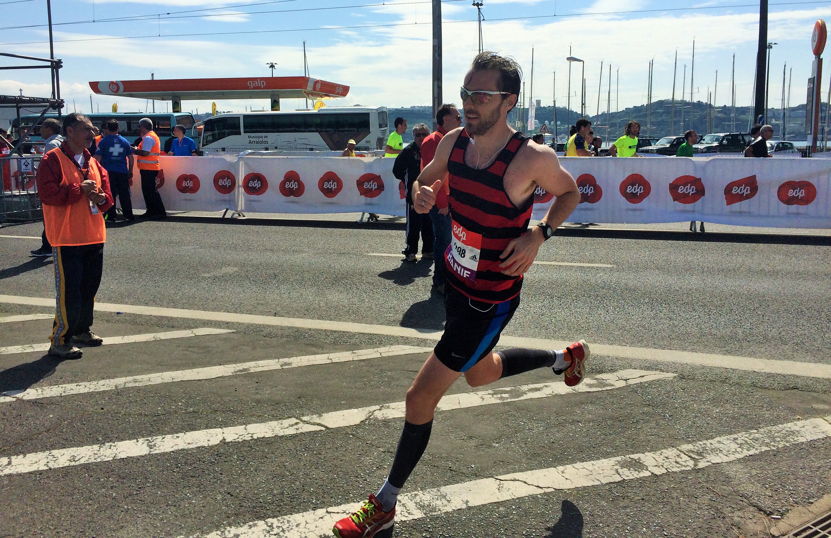 A few kilometres and energy gels later, I looked across to road as I went past the Belem Tower to see Mo Farah whizz by to his European Record. I didn’t know he’d be running so took a second look to double check it was him. I assume he did the same when he saw me. Seeing him zoom by at my normal sprinting speed looking so comfortable gave me [a kick in the stomach and] some final motivation to speed up a little.
