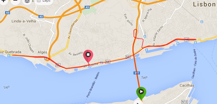 The middle of the motorway was a metal grid which no one other than me wanted to run over so I used this as the perfect opportunity to practice my poor pacing up the hill which was … the last one in the race! Yes, this course really was piss easy… From then on, it was a gradual downwards from the bridge and a steep slope down from the bridge to sea-level. After this, it was a flat-as-a-pancake race: go east along the Tagus for a few kilometres, take a U-turn and go west for 10, take another U-turn and go east for a few and finish!