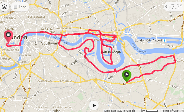 The course is probably more interesting to a tourist than to someone who lives in London but, if you’ve got time to look around, it takes you around some landmarks. I was so focused that I managed to miss my coach Geoff shouting my name on 3 separate occasions (!), didn’t really pay much attention to the crowd or look up at many points. However, if you were to … you’d be taken past the Cutty Sark (one of the noisiest and most exciting bits to me as it was one of the few landmarks I hadn’t been to), Tower Bridge, Canary Wharf, London Eye, Big Ben and the queen’s townhouse, Buckingham Palace. Part of the reason I was blasé is that I’d literally (not figuratively!) run up and down Embankment hundreds of times on lunchtime runs that I knew those stretches off by heart.