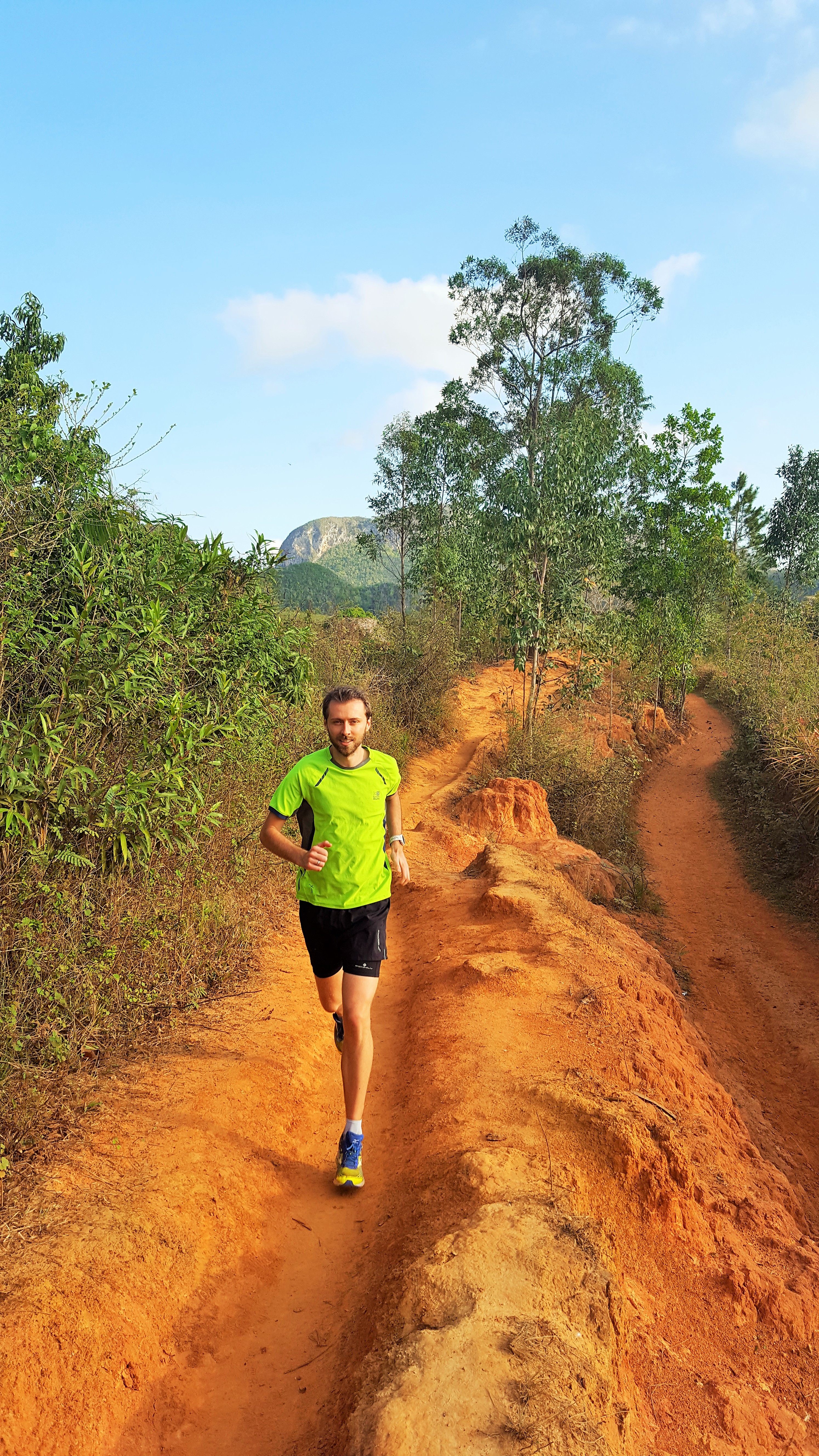 Trinidad, though small, was charming: its marvellous architecture has largely remained unspoiled (or has been renovated) with street after street of narrow, pastel-coloured, colonial mansions adorned with arches and balconies. As I toured the town, huge, rusty lorries from yesteryear lumbered by belching out monstrous clouds of black smoke while vultures circled overhead, possibly planning to make a snack out of the brightly coloured running object below them. Rather keen to deny them of their breakfast, I looked for new routes and soon enough reached the bottom of a valley and discovered a narrow river path.