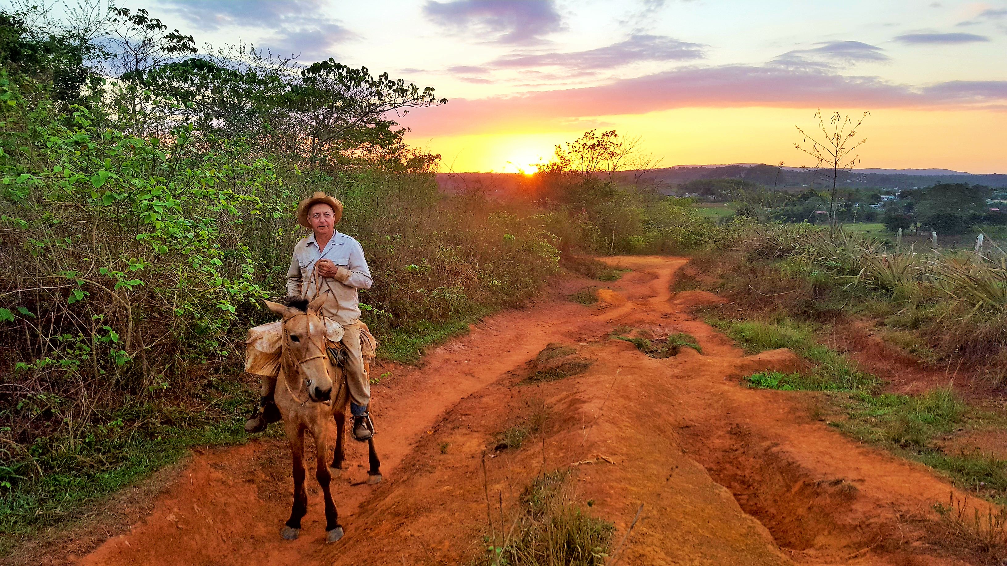 After an hour, the first slither of sunshine crept over the Cuban skyline. Soon, the clouds were orange then scarlet pink while the soft rays brought new warmth to an otherwise cool morning. A local farmer on horseback rode past me and raised his straw hat as a greeting. Time stopped and I paused to witness the scene.