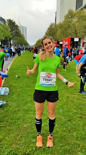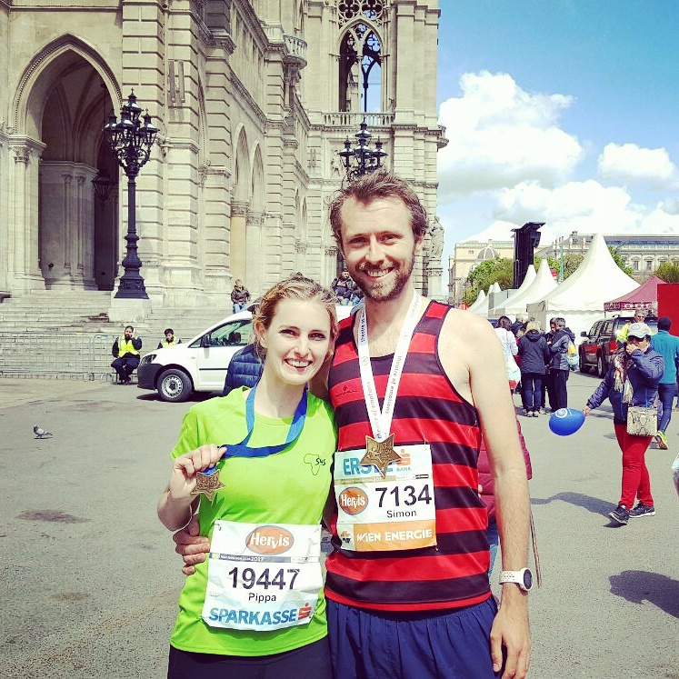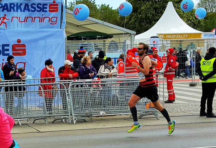My hamstring was niggling but I was doing alright – the first few kilometres of a marathon don’t always indicate much about how the latter ones will go, it’s mostly about not going out too fast and knackering yourself for later. I went through 5km in 19:19, roughly on target. As we exited the park, we started running back towards town along Vienna’s humongous Donaukanal (Danube canal): at this point in time, essentially a giant wind tunnel in our faces. Practically, it probably had hardly any impact on runners’ times but it was starting to dampen my spirits, especially as I was losing a few seconds here and there, my hamstring injury was flaring, a blister was making my running very uncomfortable and I was replaying some of my super slow recent half marathons in my head and thereby convincing myself that this race was a bit pointless.