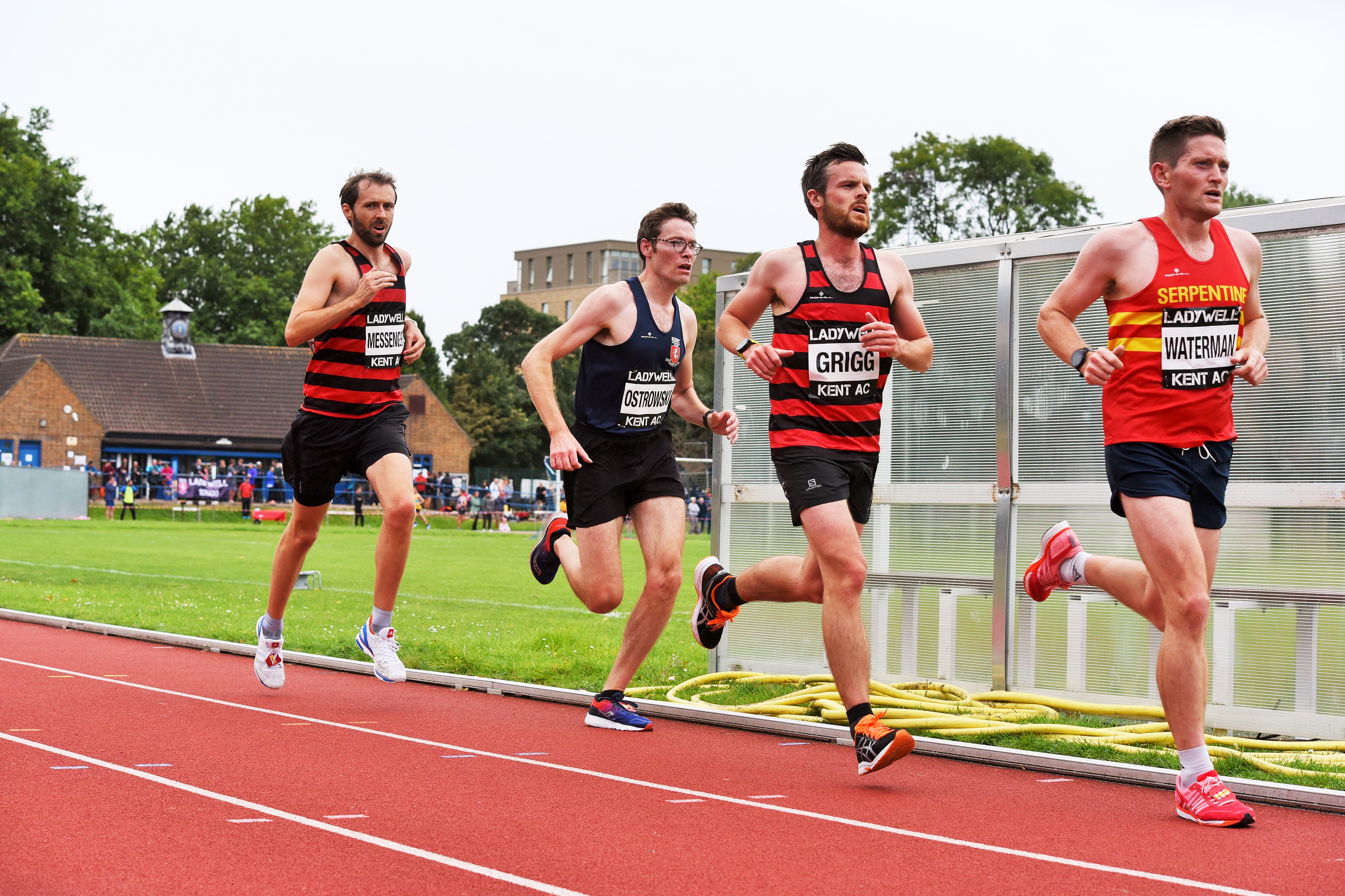I quickly set myself up behind Adrian at the front. Actually, because I was hoping to be metronomic throughout the race, I ended up running in front of him for a few laps because my watch was telling me I was one second off pace/lap. Every second counts and all that. In lane 3, Pippa was wiping the drizzle off her watch to shout my lap pace at me which was incredibly helpful for me to know whether I should speed up or not as it gets to a point – namely: 2 laps, when trying to add 84 seconds to 84 seconds and working out if you go through the line at the right time becomes a challenge!