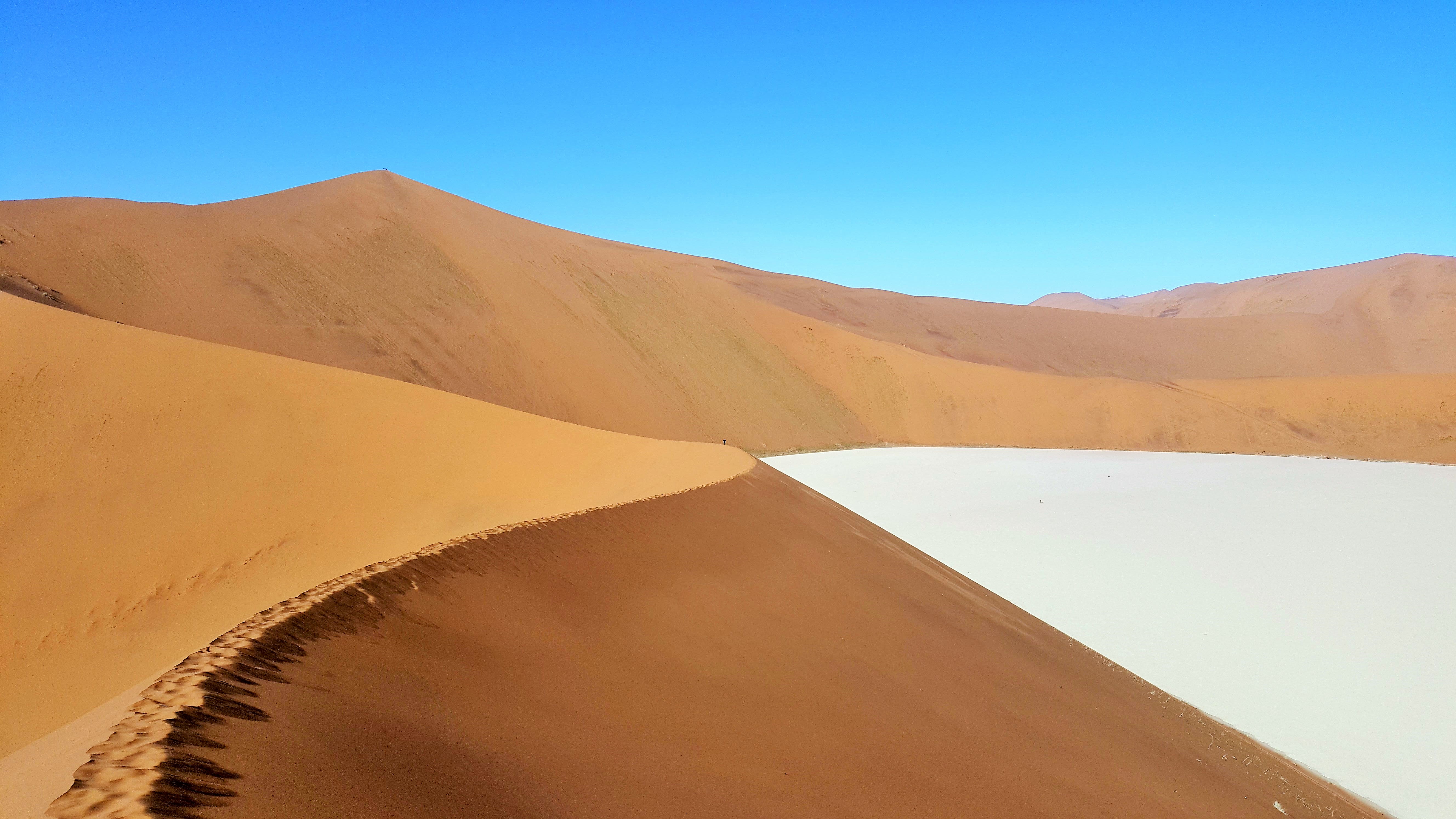 That said… the camping was a means to an end. We were here to visit the famous Sossusvlei sand dunes, which reach a whooping 350m high (that’s high). All around is the Namib Desert which is more the rocky and flat type of desert than the “Aladdin” type. It’s also one of the driest places on Earth, to the point where you can visit a fossilized forest of trees nearby which died thousands of years ago but has been preserved as they were because the air really was THAT dry (you should see what it does to your skin after a few days…)