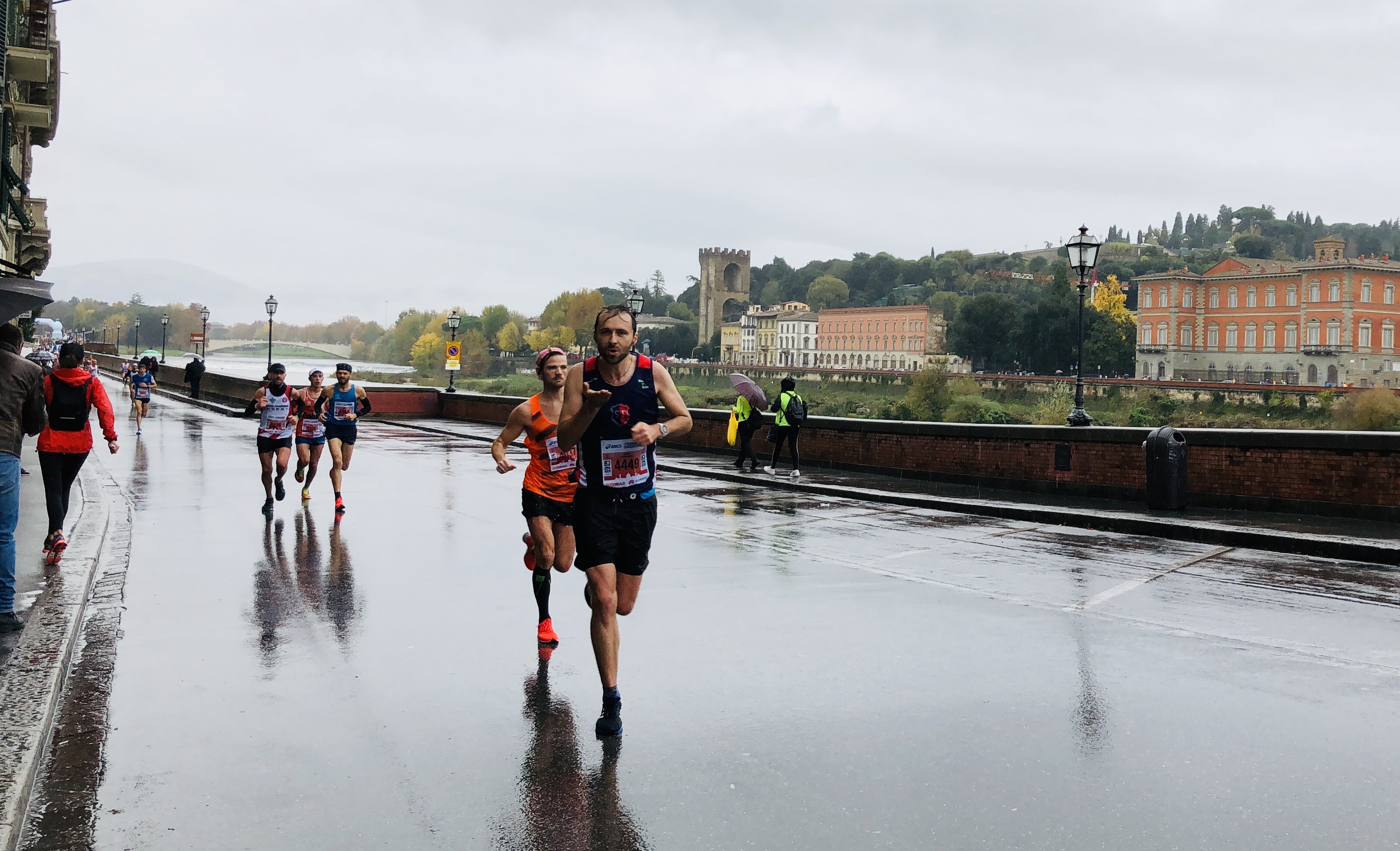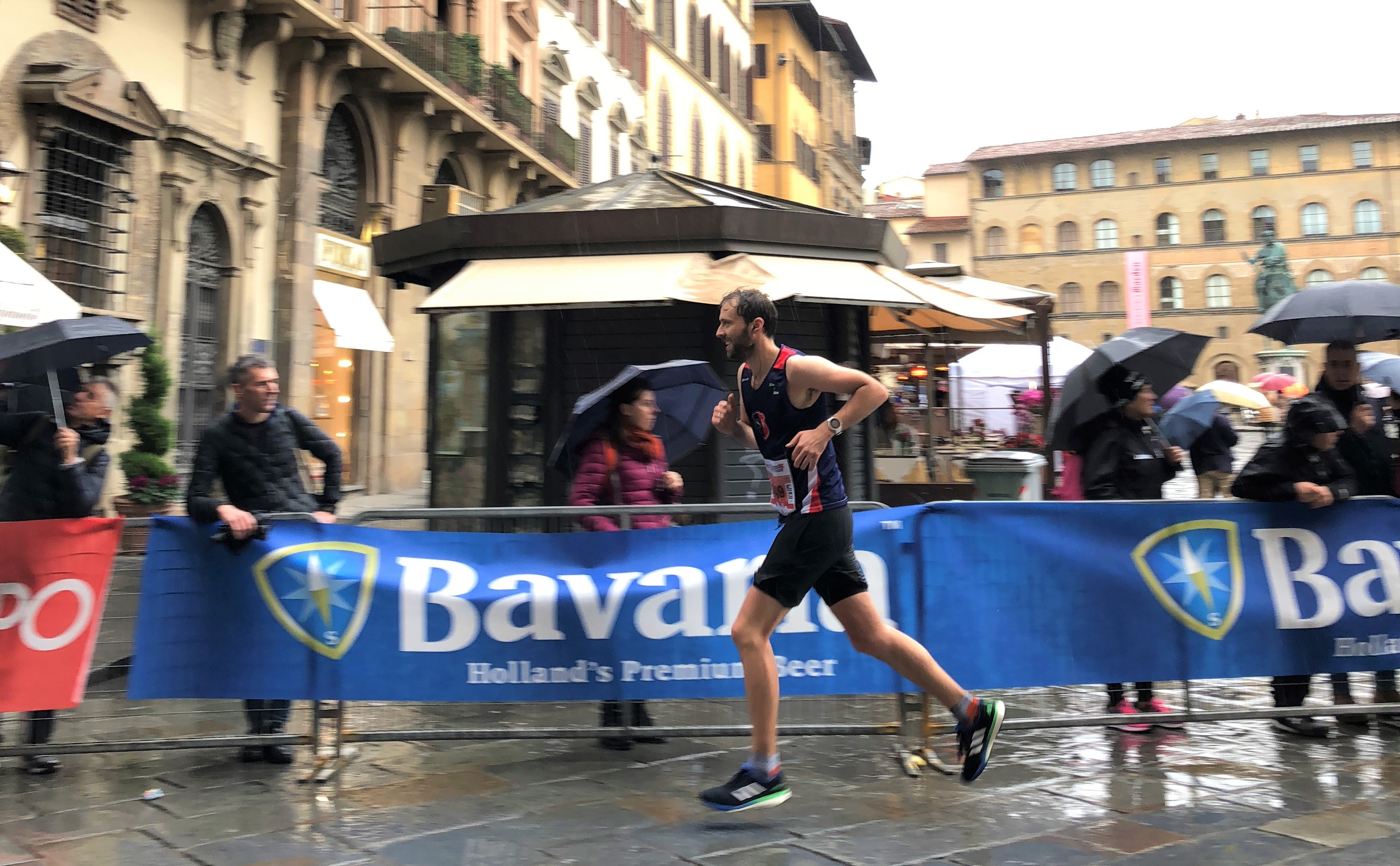 We had about 5 minutes to go ‘til the start of the Florence Marathon and I was trying to do one of those “focus, concentrate and visualise the race” type exercises they tell you to do before races. The persistent rain wasn’t helping and my mind was drifting off until, wait, why has it started raining warm rain on my leg?! WHAT!! I turned around to confront my new nemesis, whose best line of defence was “it wasn’t me”. Sure. I guess it was just an unusual cloud formation. Or many someone doing some limbo dancing behind him and turbo-jetting their piss through his legs onto me. I mean … come on!!