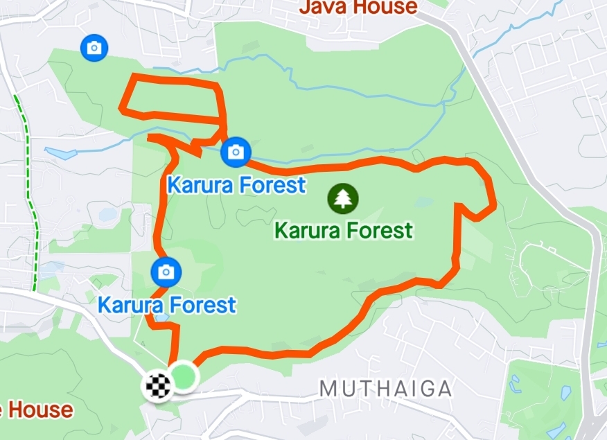 After a quick bit of searching on Strava for routes which seemed to be frequently use (i.e. where is there the densest amount of “blue lines” on the map), I settled on this Karura Forest nearby which, for a lack of alternatives, seemed like a decent choice. (As it happens, the next day, speaking to our hosts, they mentioned two nice places to go: the National Park and Karura Forest so I stumbled upon a nice place by luck!)