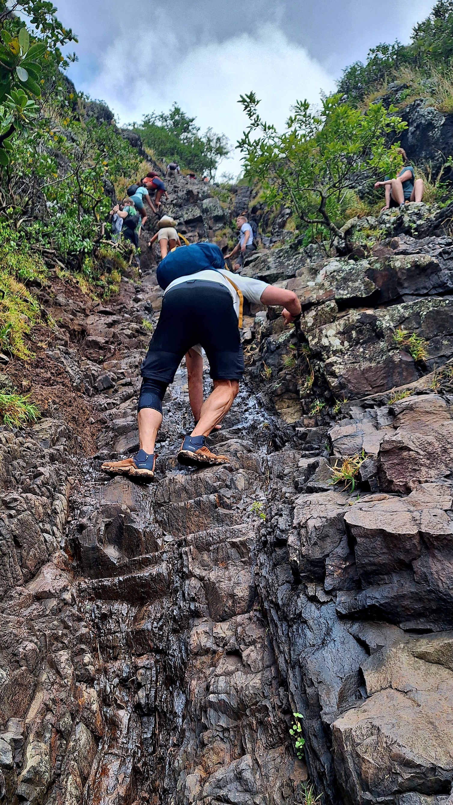 It was quite fun doing on-the-spot calculations to find the best grip and pushing past people sat having a rest, though I was also being very careful. With the rain, the soil had developed a clay/muddy texture which isn’t ideal on a 70/80° surface and falling down some sections was both figuratively and literally deadly.