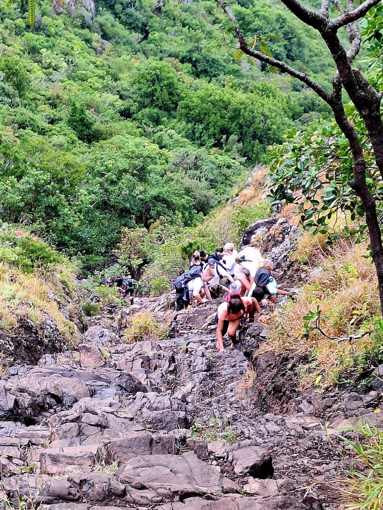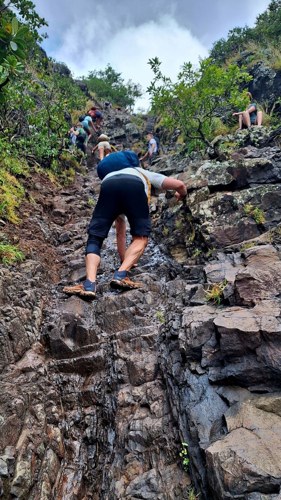 Running, clearly, was out of the question but – (very) sensible – speedy-ish climbing wasn’t so onwards and upwards (literally), off I went. I zipped past a group (in the photo) which was clogging up the hardest point which was quite satisfying as it would have killed the vibe a bit to have to wait for 30 people to baby-step their way up.