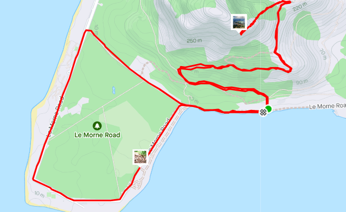 Le Morne Brabant: a 556 block of basalt sticking out in a peninsula at the extreme southwest tip of the island. “extremely dangerous and slippery when wet”, according to the online reviews. Well, what could possibly go wrong within a few minutes of an hour-long tropical rainstorm just before I try to “race” up it? (spoiler alert: nothing actually, sorry).
