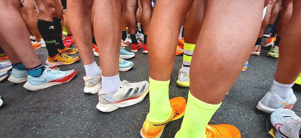 And I really should correct myself: it actually did look like we were about to run a marathon, if only because of the endless forest of carbon-plated fluorescent shoes I could see from my ankle-high vantage point.