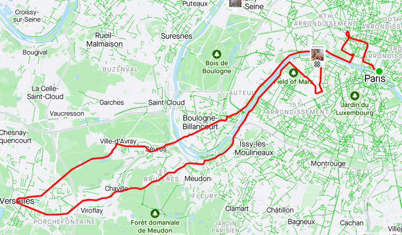 To prepare for the race, I’d actually done this “out-of-Paris” part of the course 5 or 6 times in the previous few months so knew what to expect. Most people use Heartbreak Hill at the Boston Marathon as the reference point for hell during a marathon: the TV commentators for the elite marathon worked out this was 6x worse. It felt like it. It was relentless.