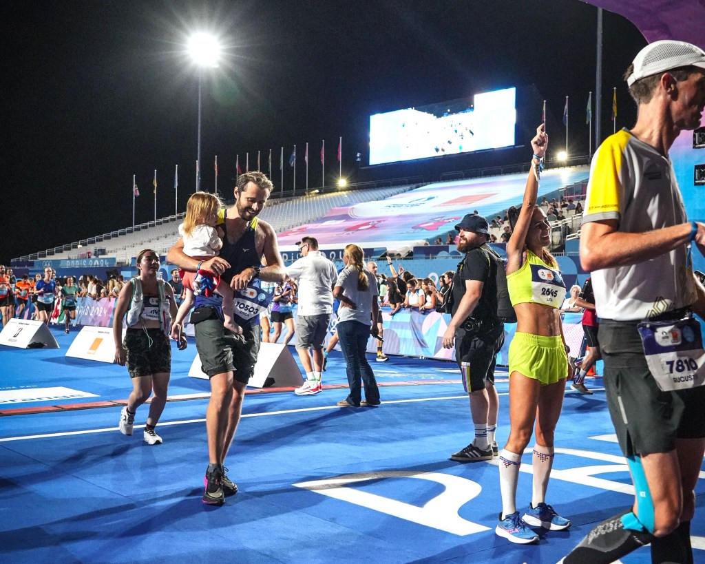 Also as planned, I grabbed Maëlie for the last 200m so she got to experience her first (of many, obviously, no pressure kiddo) Olympic finish line. Now, she’s not a heavy kid at all. But, after 42km, she weighed an absolute metric ton!