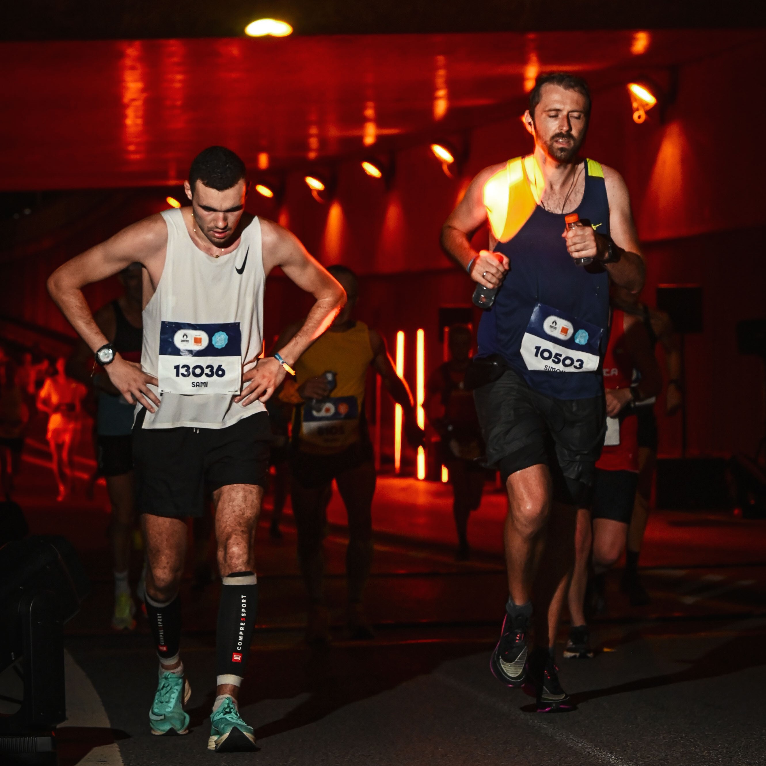 While the course was undeniably easier, it was mentally quite a bit harder. Partly because the lack of hilly challenge made it more mundane, partly because, well, you’re 30+ km into a run and probably partly because it was almost midnight.