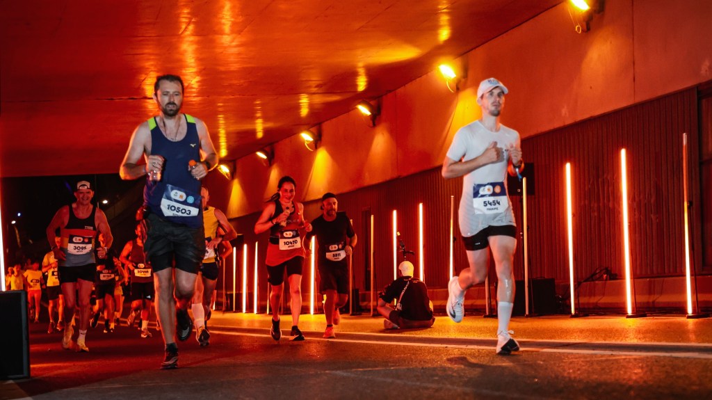 Which is, unsurprisingly, what a lot of runners were doing. FINALLY, in all my glory, I went from being overtaken by thousands of runners to no longer looking out of place. They’d put a light show of tunnels in the first third (I suspect to encourage people though, amusingly, it probably only reinforced the perception for people who didn’t know the course that this was it in terms of climb, muahaha) and loads of photographers though I doubt I would have come out of any photos looking particularly heroic. 6’45/km might be better than walking, but it’s not quite Olympic champion standard either.