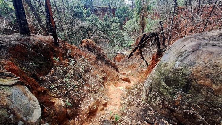 I had initially thought of running up the summit route but, well, “summit” = serious climb and it was already getting pretty toasty by now, so I headed back towards camp, taking my time as I ran through really pretty forested areas, canyons, along waterways (few crocs. No hippos mind you: surely the trail name meant they had hippos?!) and up and down some sharp, boulder-strewn inclines.